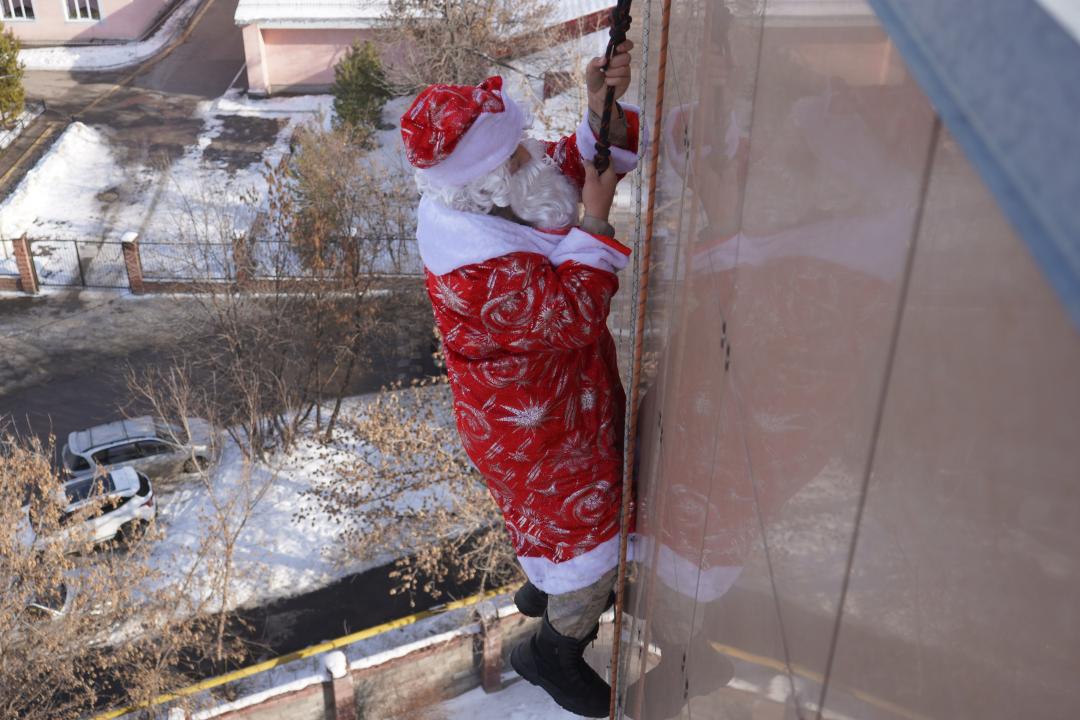 Жас альпинистер балаларды креативті тәсілмен қуантты. Аяз ата болып киінген клуб тәрбиеленушісі шатырдан түсіп, палатаның терезесінен кірді, мұндай тәсіл балаларды таң қалдырды.