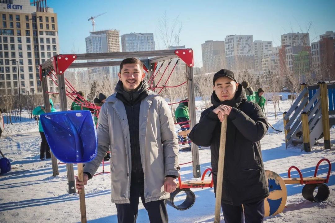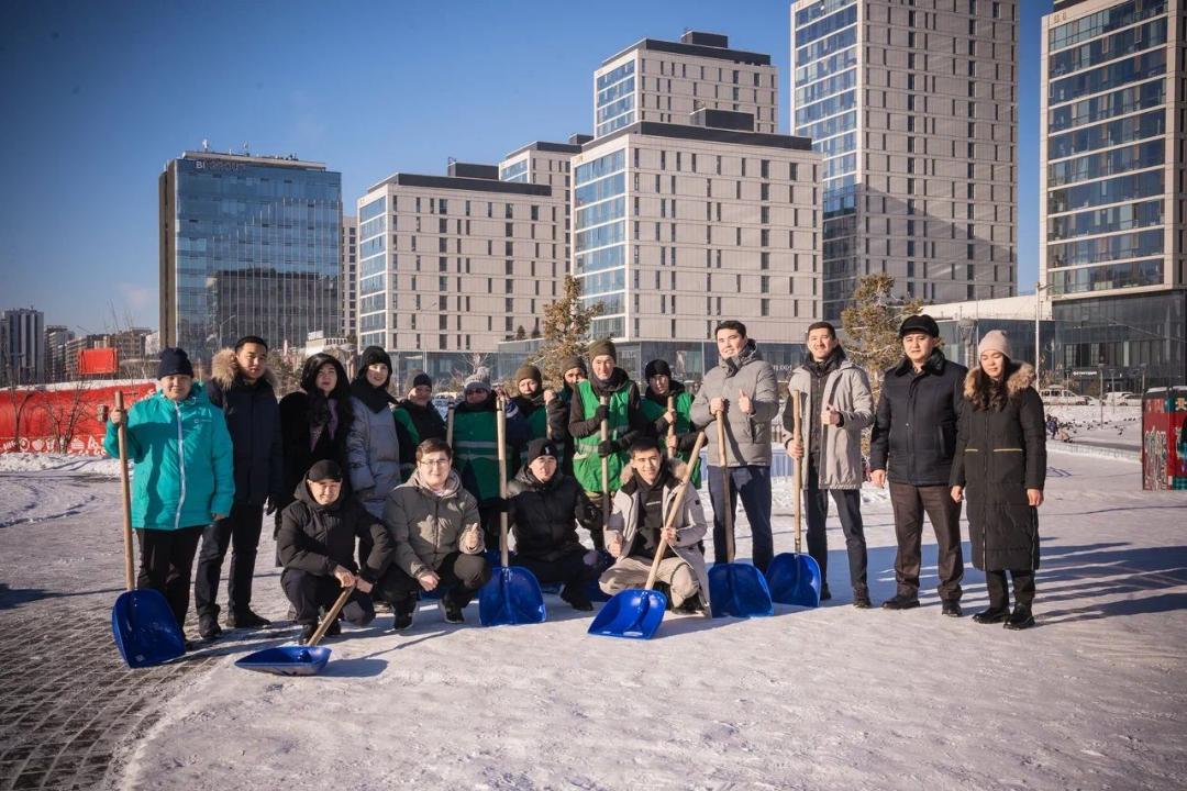 Еріктілер коммуналдық қызметкерлерге «Бухарест» саябағының аумағын қардан тазартуға көмектесіп, оларға ыстық шай мен дәмді тағам ұсынды. Коммуналдық қызметкерлер жылы лебіздерін танытып, өзара қолдау атмосферасын қалыптастырды.