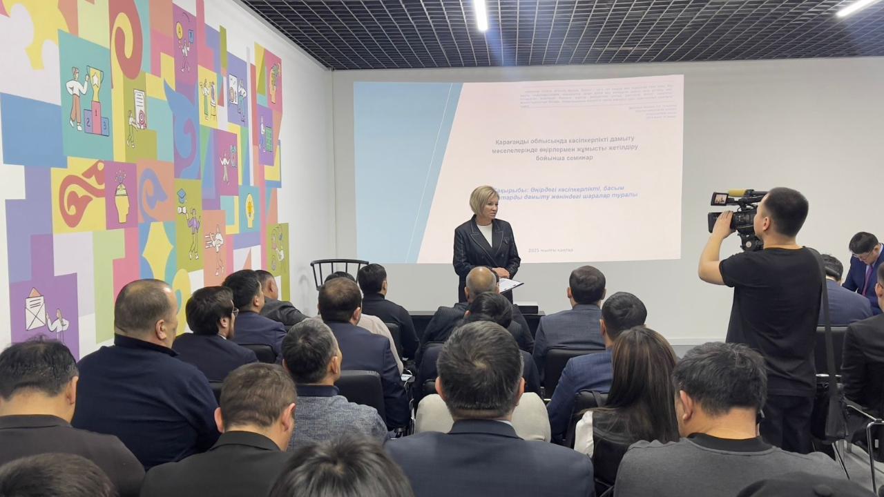 Сондай-ақ, қатысушылар семинар-тренингке қатысып, оларға Қарағанды облысы әкімінің орынбасары Ермек Алпысов өңірдің даму бағыттары туралы айтып, кәсіпкерлікті қолдау, агроөнеркәсіптік кешенді дамыту, жұмыспен қамту мәселелерін сөз етті. Сонымен қатар мемлекет басшысының алға қойған міндеттері, атап айтқанда еңбек нарығында сұранысқа ие мамандарды даярлау үшін колледждерде дуальді білім беруді енгізу, сондай-ақ инвестициялық жобаларды іске асыру мәселелері қарастырылды.