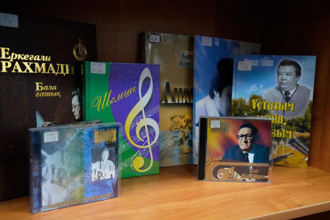 Көрмеге Ұлттық кітапхана қорынан 200 басылым, соның ішінде кітаптар, журналдар, күйтабақтар мен CD-дисклер қойылған.