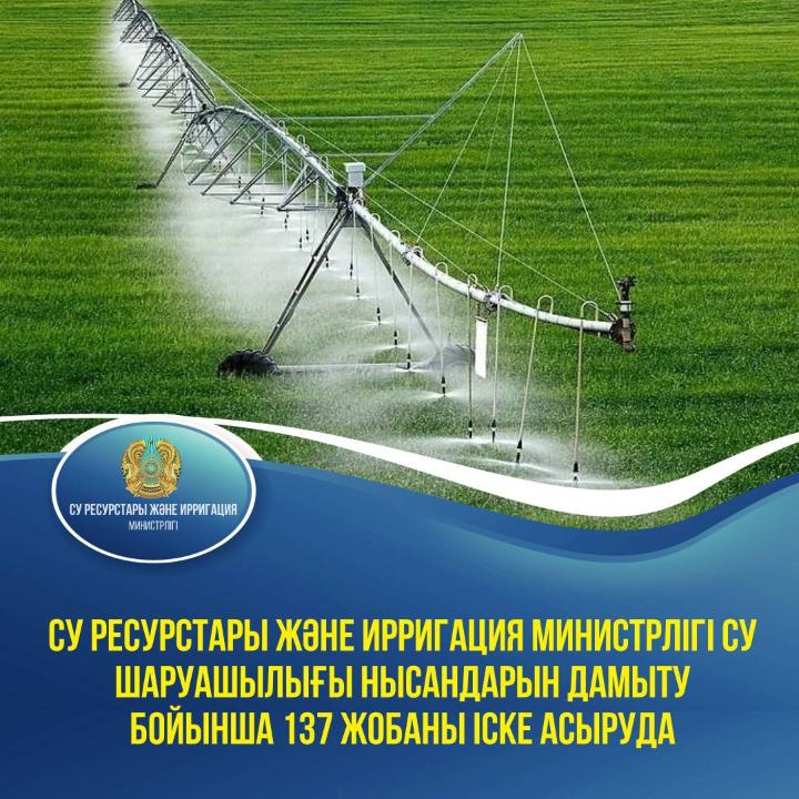 Су ресурстары және ирригация министрлігі 2024 жылы еліміздің су шаруашылығы нысандарын дамыту бойынша 137 жобаны іске асыруды бастады. Сондай-ақ, 201 жоба бойынша жобалау-сметалық құжаттама әзірленіп жатыр.