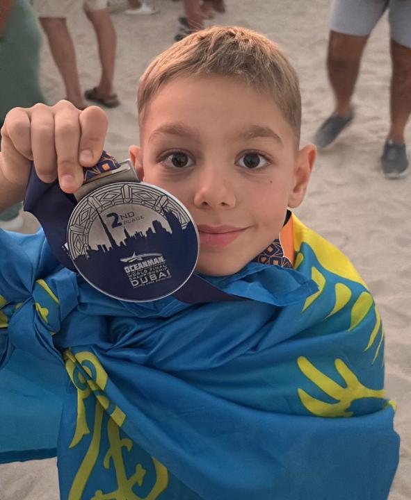 Дубайда өткен «Оушенмен» жарысында Қонаев қаласының спортшысы, 7 жасар Дмитрий Кремпин күміс медаль жеңіп алды.