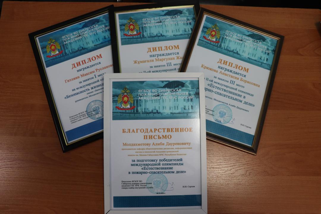 Академияның ақпараттық жүйелер мен технологиялардың жалпы техникалық пәндері кафедрасының ғылыми жетекшісі, оқытушысы Әліби Молдахметов курсанттарды олимпиадаға дайындағаны үшін ұйымдастырушылардың алғыс хатымен марапатталды.