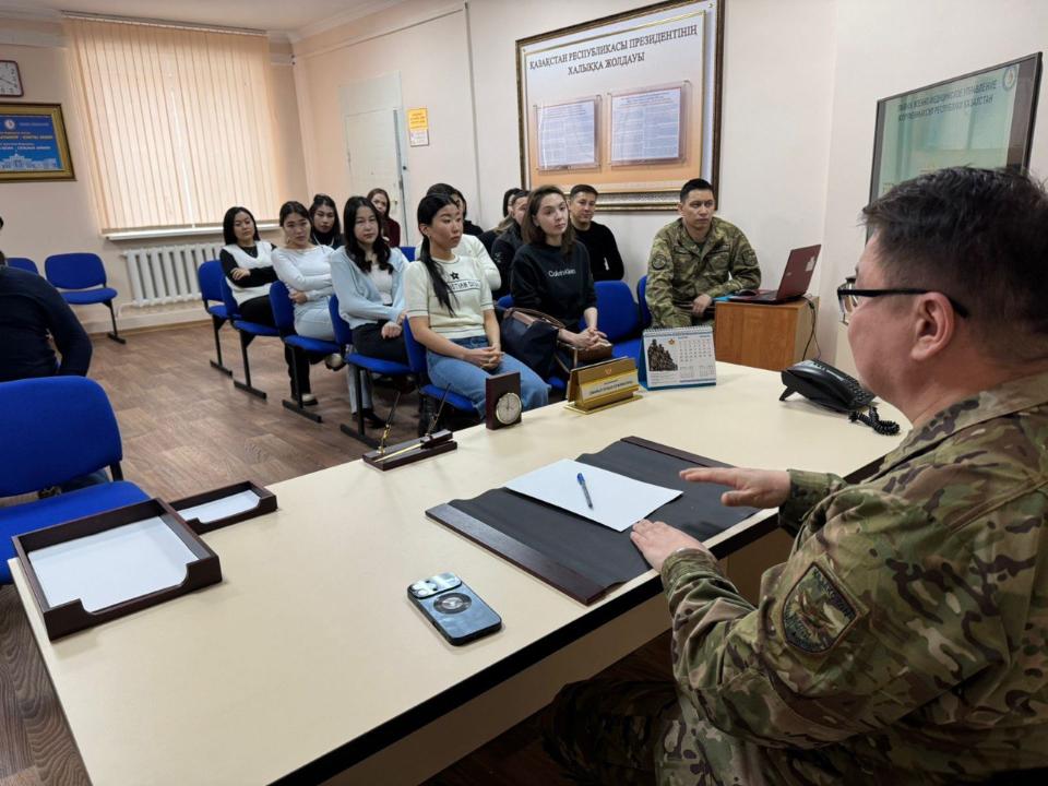 ҚР ҚК Бас әскери-медициналық басқармасының бастығы медицина қызметінің полковнигі Ержан Смайыл өз тағдырын армиямен байланыстыруды жоспарлап отырған жастармен кездесті.