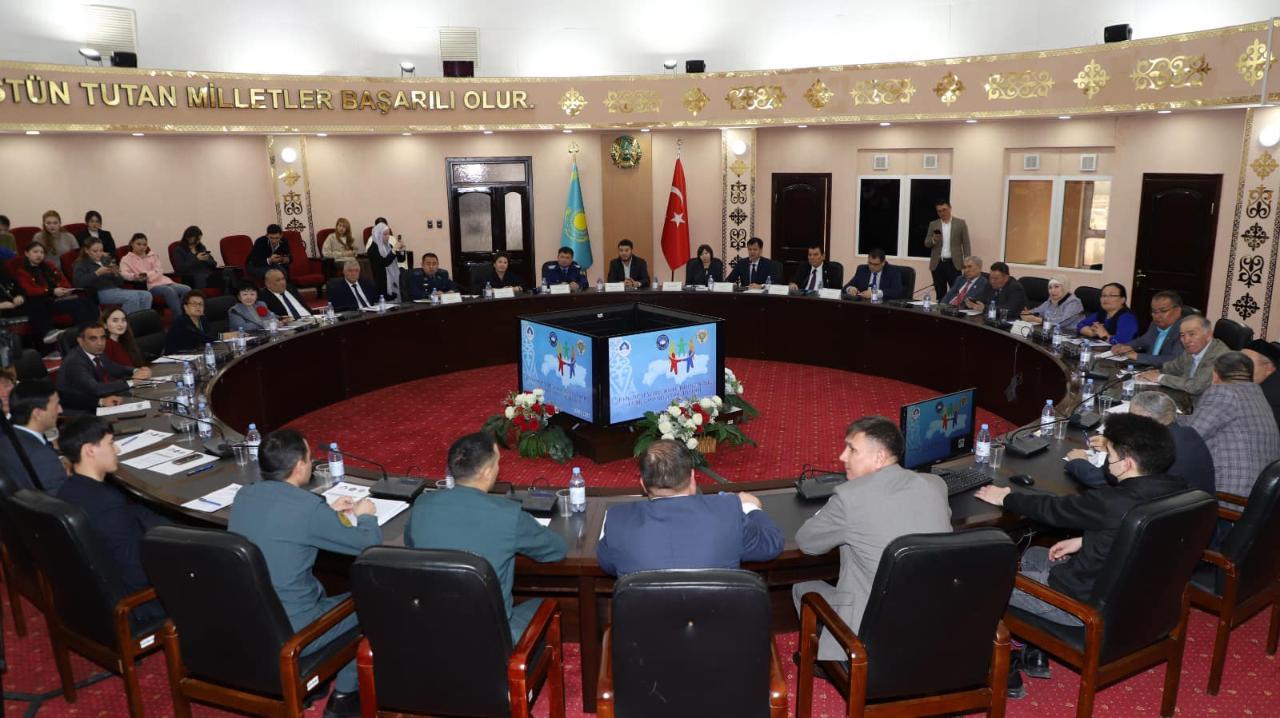 «Дөңгелек үстел» барысында Түркістан облыстық қоғамдық даму басқармасы басшысының орынбасары Нұрсұлтан Сейтжанов Қазақстан халқы Ассамблеясының қоғамдағы этносаралық келісімді сақтаудағы маңыздылығына тоқталса, Қ. А. Ясауи атындағы ХҚТУ-нің ректоры Жанар Темірбекова халықаралық университеттің этносаралық ынтымақтастық пен түркітілдес әлемді біріктірудегі рөлін атап өтті.
