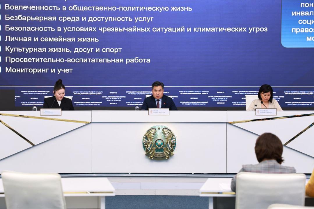 Тұжырымдама шеңберінде, ағымдағы жылдан бастап жылы 13 негізгі бағытты жүзеге асыру басталады: теңдік және кемсітпеу; құқықтық қамтамасыз ету; әлеуметтік қорғау деңгейін арттыру; инклюзивті еңбек нарығы; денсаулық сақтау, оңалту және оңалту; инклюзивті білім беру; қоғамдық-саяси өмірге араласу; кедергісіз орта және қызметтердің қолжетімділігі; төтенше жағдайлар мен климаттық қауіптер кезіндегі қауіпсіздік; жеке және отбасылық өмір; мәдени өмір, демалыс және спорт; оқу-ағарту жұмыстары; мониторинг және есепке алу», – деді вице-министр.