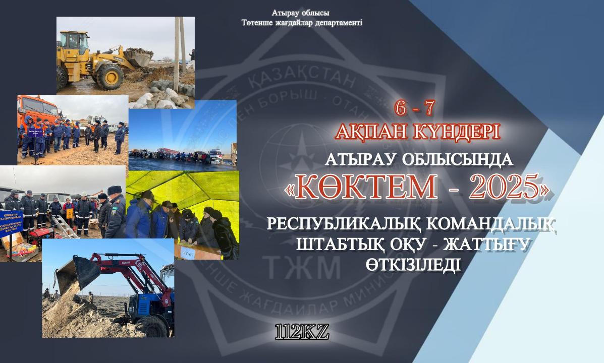 2025 жылғы 6-7 ақпанда еліміздің оңтүстік және батыс өңірлерінде «Мемлекеттік азаматтық қорғаныс жүйесінің бақылау органдарын, күштері мен құралдарын су тасқыны кезіндегі төтенше жағдайларды жою жөніндегі іс-шараларға дайындау» тақырыбында «Көктем-2025» республикалық командалық-штабтық оқу-жаттығуының 1-кезеңі өтеді Атырау қ. Оқу-жаттығу аясында екі күн бойы Алматы, Шымкент, Алматы, Атырау, Ақтөбе, Батыс Қазақстан, Жамбыл, Қызылорда, Маңғыстау, Түркістан облыстары мен Жетісу облысында кешенді профилактикалық іс-шаралар өткізіледі Таңертеңгі сағат 0-де еліміздің 11 аймағындағы барлық қолжетімді дыбыстық электр сиреналары іске қосылады. Осыған орай, сабыр сақтап, дүрбелең мен қауесеттерге берілмеуіңізді сұраймыз.