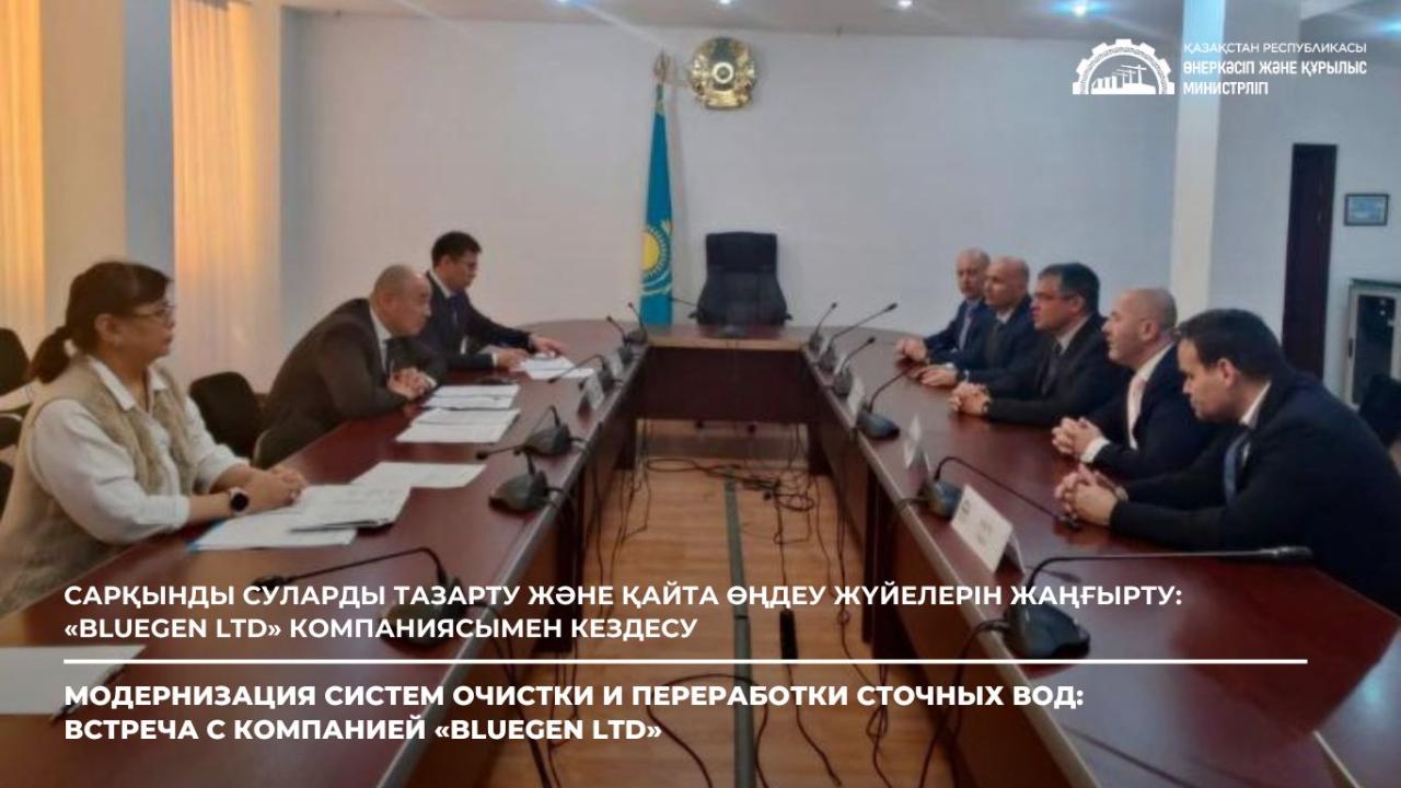 Бүгін Қазақстан Республикасының Индустрия және құрылыс министрі Қанат Шарлапаев BlueGen Ltd израильдік компаниясының өкілдерімен жұмыс кездесуін өткізді. Отырыс ағынды суларды тазарту және қайта өңдеу жүйелерін жаңғырту, сондай-ақ Қазақстанда заманауи тұщыту және суды үнемдеу технологияларын дамыту мәселелеріне арналды.