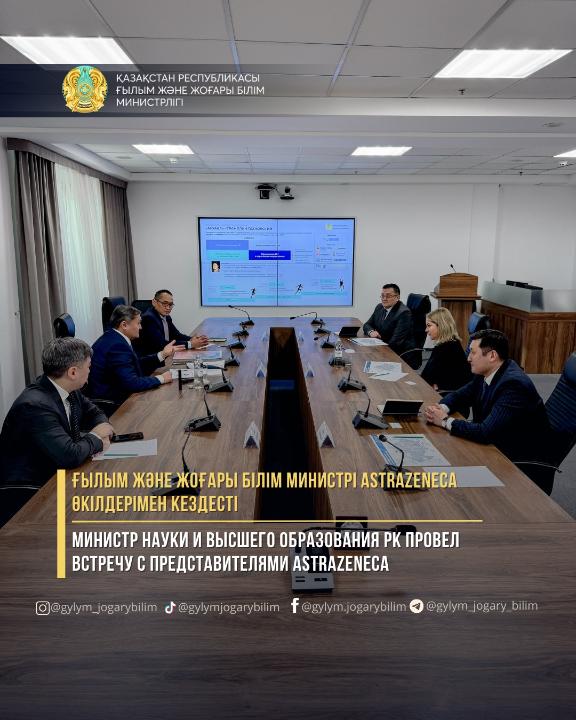 Кездесу барысында министрлік пен AstraZeneca арасындағы ынтымақтастықтың болашақ бағыттары талқыланды, оның мақсаты – Қазақстандағы жоғары білім және ғылымның инновациялық жүйесін дамыту.