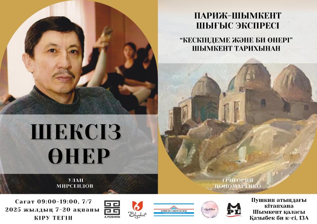 Көрме аясында өмірлері Шымкент қаласымен тығыз байланысты болған суретші Григорий Пономаренко мен балет әртісі, педагог Ұлан Мирсеидовтың шығармашылығы таныстырылатын болады.