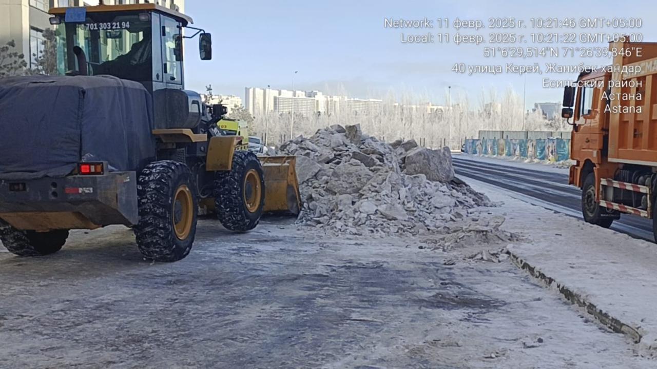 11 ақпанға қараған түні елордадан 1 957 рейспен қар полигондарына 25 мың текше метрден астам қар шығарылды.