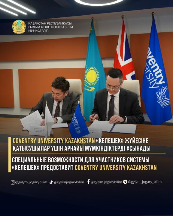 Coventry University Kazakhstan мен «Қаржы орталығы» АҚ келісімге қол қойып, «Келешек» бірыңғай ерікті жинақтау жүйесіне тіркелген жастардың университетте 20%-ға дейінгі жеңілдікпен білім алуына жағдай жасауда.