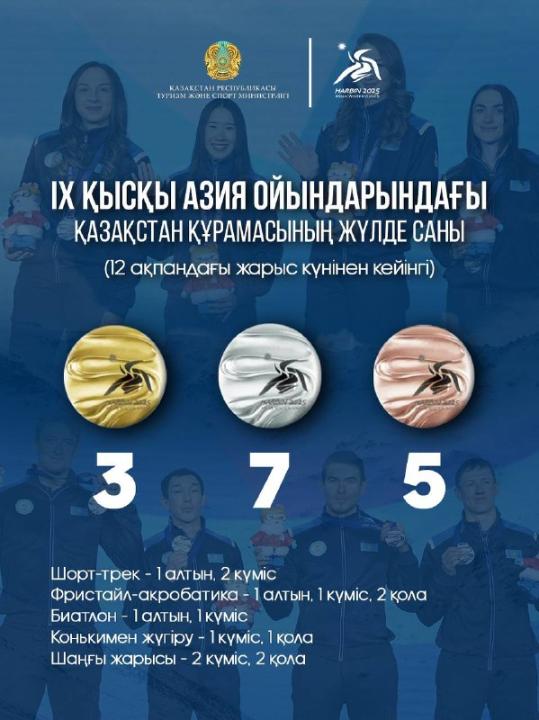 IX қысқы Азиада: 12 ақпандағы жарыс күнінен кейін Қазақстан құрамасының қоржынында 3 алтын, 7 күміс, 5 қола медаль бар