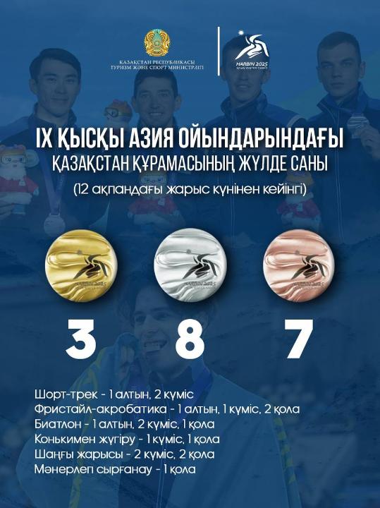 IX қысқы Азиада: 13 ақпандағы жарыс күнінен кейін Қазақстан құрамасының қоржынында 3 алтын, 8 күміс, 7 қола медаль бар