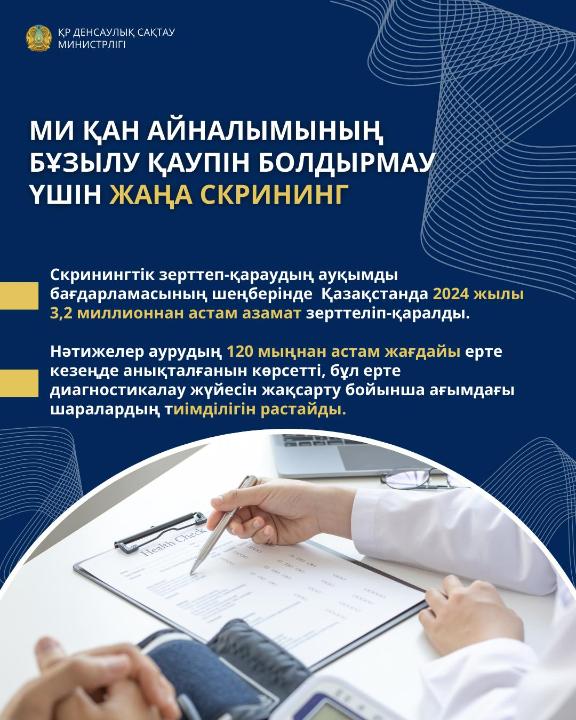 Скринингтік зерттеп-қараудың ауқымды бағдарламасының шеңберінде Қазақстанда 2024 жылы 3,2 миллионнан астам азамат зерттеліп-қаралды.