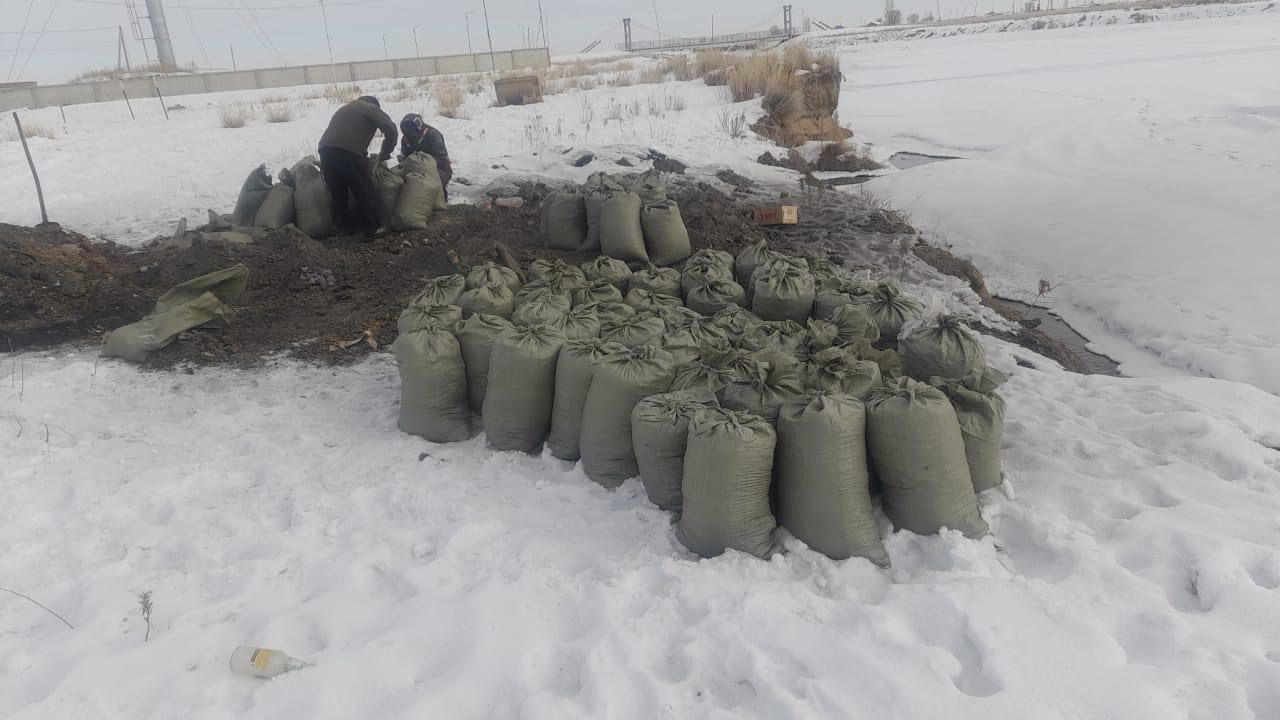 Сонымен қатар 10 000 (он мың) қап барлық ауылдық округтерге таратылып, инертті (күл, шлак, құм) материалдарға толтырылды. Қаптар су басу қаупі бар участоктерге қойылуда.