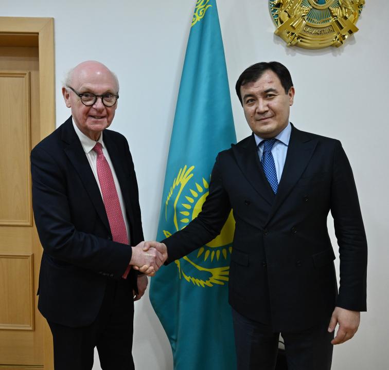 Астана, 2025 жылғы 10 ақпан – Қазақстан Республикасы Сыртқы істер министрінің орынбасары Әлібек Бақаев Франция Ішкі істер министрінің Арнайы өкілі Патрик Стефанинимен кездесу өткізді.
