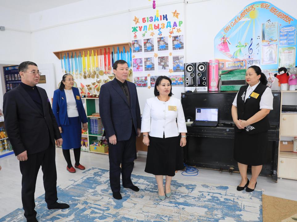 Шалқар ауданына жұмыс сапары барысында облыс әкімі күрделі жөндеуден өткен мектеп пен балабақшаға барды.