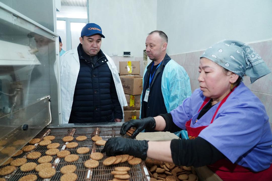 ✔️Түркістан облысының әкімі Нұралхан Көшеров Сарыағаш ауданына жұмыс сапары барысында сарыағаштық кәсіпкерлермен кездесіп, кәсіпкерлік саласындағы мәселелер мен ұсыныстарын талқыланды. Нұралхан Көшеров «Бәйтерек-Шымкент» ЖШС-нің кондитерлік өнімдер өндіретін кәсіпорынның жұмысымен танысты. Бүгінде 40-тан астам адамды тұрақты жұмыспен қамтыған цех, айына 70-80 тонна, ал жылына 960 тонна өнім өндіруге қауқарлы. Цехта 32 түрлі өнім шығарылуда. Қазіргі таңда өндірілген тәттілер еліміздің түкпір-түкпіріне ғана емес, сонымен қатар Әзербайжан мемлекетіне де жөнелтілуде. Кәсіпорынға орнатылған қондырғылар Италия және Ресей елдерінен алынған.