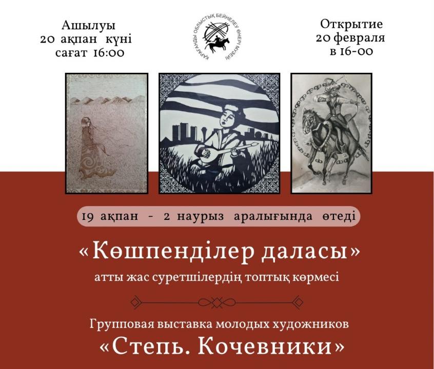 15 жас суретшінің 30-дан астам жұмысы “Дала. Көшпенділер” атты көрме өтеді. Экспозиция 20 ақпанда сағат 16:00 ашылады.