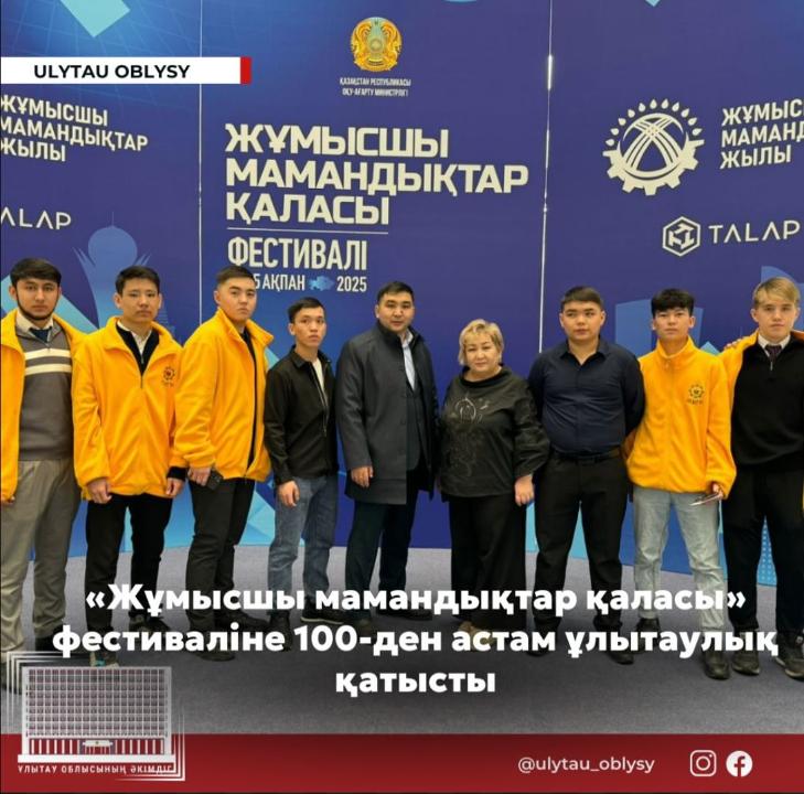 11-15 ақпан күндері Астана қаласында өткен фестивальдің ашылуына Ұлытау облысындағы 13 кәсіптік-техникалық білім беру ұйымдарының басшылары, студенттері қатысып қайтты.
