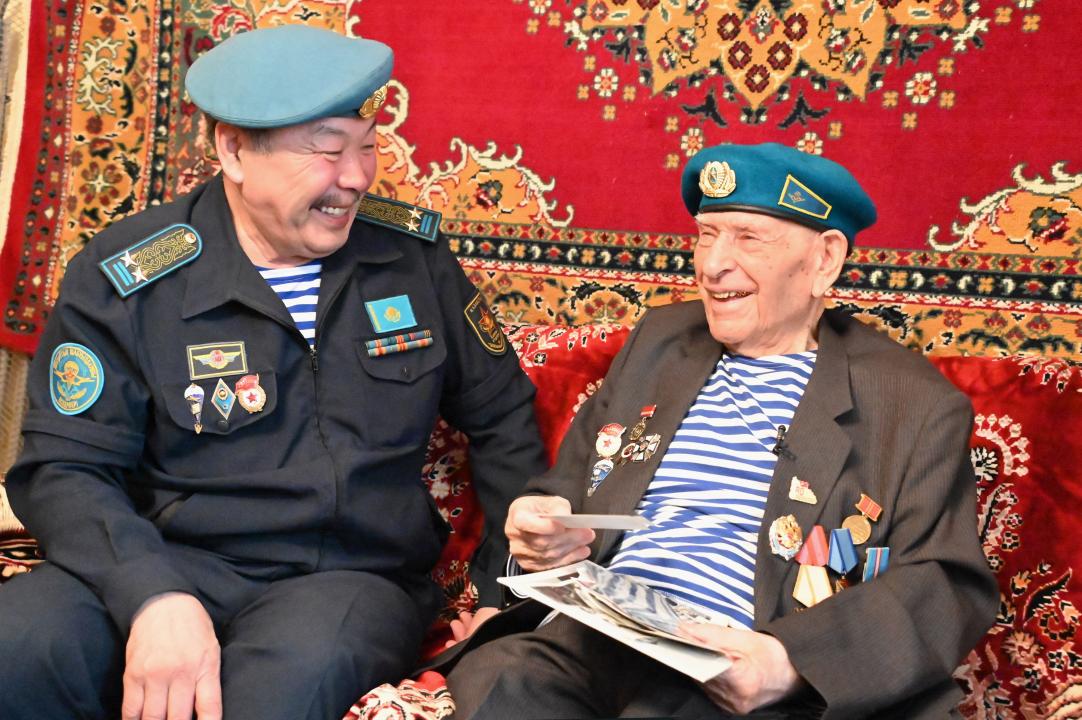 Алматыда әскери қызметшілер дәстүр бойынша 100 жастағы Ұлы Отан соғысының ардагері Виктор Изюмниковты мерекемен құттықтады.