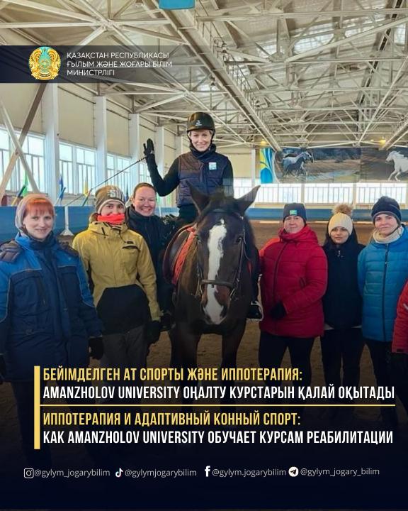 Amanzholov University-ден 500-ден астам адам бейімделген ат спорты және иппотерапия әдісі бойынша оңалту курсынан өтті. Бұл – тірек-қимыл аппараты бұзылған, церебралды сал ауруы, аутистік спектрдің бұзылыстары және неврологиялық аурулары бар адамдарды емдеудің заманауи тәсілі. Әдіс атқа мінгізу арқылы оңалтуға негізделген.