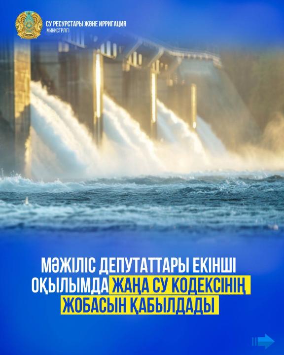 Мәжіліс депутаттары екінші оқылымда Су ресурстары және ирригация министрлігі әзірлеген жаңа Су кодексінің жобасын қабылдады.