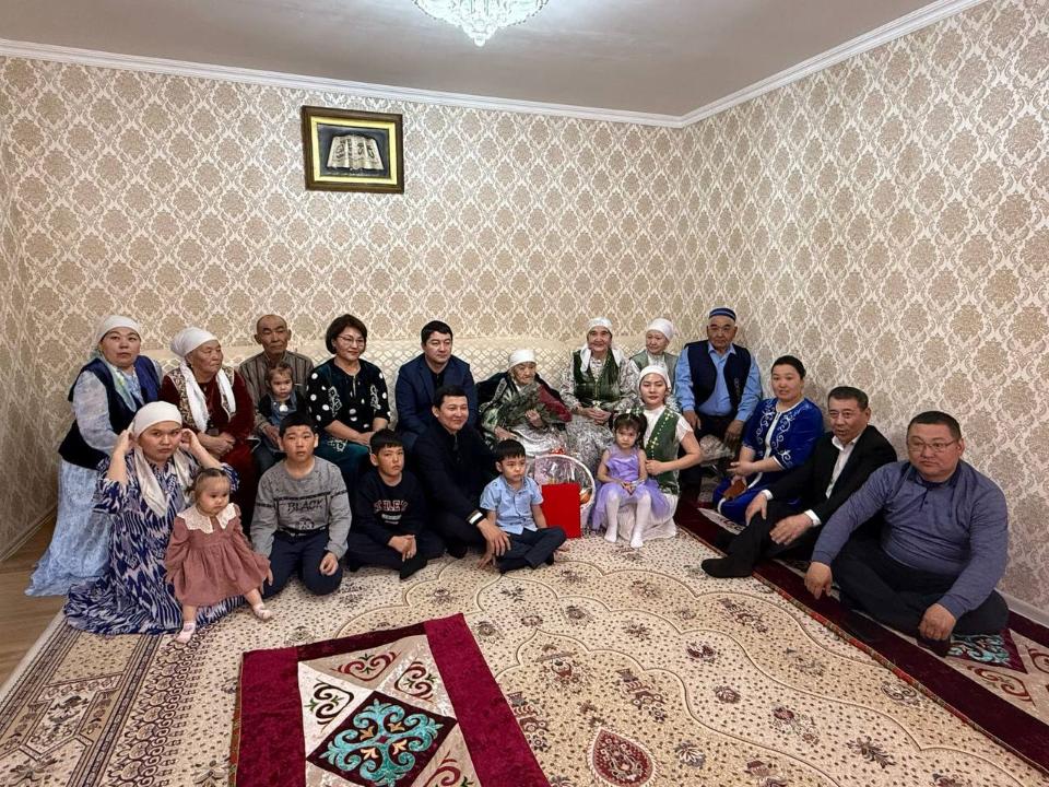Өңір басшысы соғыс жылдарынан бастап еңбекке ерте араласып, екі ғасырдың жүзін көрген ер ананың еңбегін ерекше атап өтіп, алғыс білдірді.