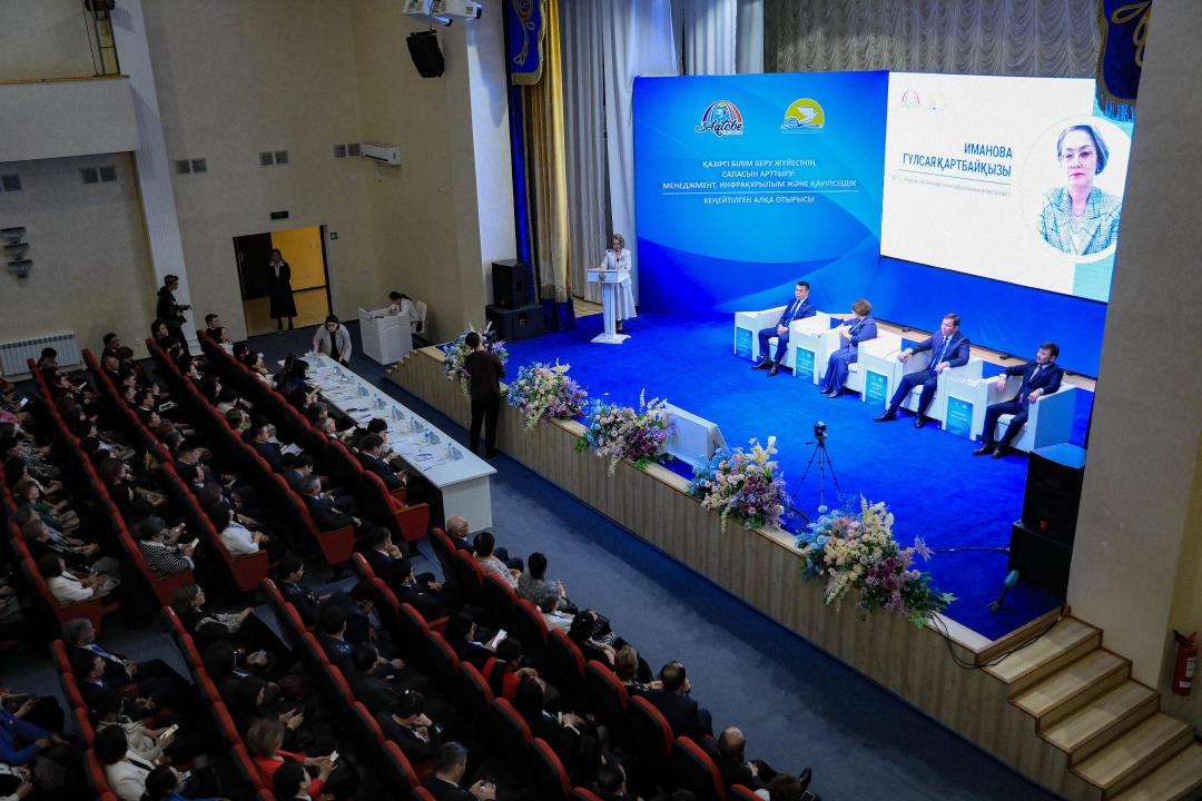 Жиын барысында Ақтөбе қаласындағы №15 «Жидек» бөбекжай-балабақшасының меңгерушісі Гүлсая Иманова — «Мектепке дейінгі білім: сапа, жаңашылдық, даму», Байғанин орта мектебінің директоры Нұрсая Есқазиева — «Ауыл мектебінің жаңа моделі: жайлы, заманауи және қауіпсіз білім ордасы» тақырыбында баяндамалар оқыды. Одан соң Ақтөбе жоғары политехникалық колледжінің директоры Жеңіскүл Мұхамбетпайызова «Жұмысшы мамандықтарының мәртебесін көтеру — кәсіби білім берудің жаңа мүмкіндіктері» атты баяндамасын өзі басқарып отырған колледж мысалында әңгімелеп, дуалды оқыту жүйесінің тиімділігін айтты. Облыстың полиция департаментінің бастығы, полиция полковнигі Абай Жүсіпов өскелең ұрпақты тәрбиелеу мәселесін талқылап, оларды құқық қорғау органдарымен тығыз байланыста оңтайлы шешу жолдарын айтты. Ал Ғ.Жұбанова атындағы Ақтөбе облыстық филармониясының қызметкері, «Ерен еңбегі үшін» медалінің иегері Орал-Қосай Байсеңгір «Бала тәрбиесіндегі бас ұстаз — ата-ана» тақырыбында сөз сөйледі.
