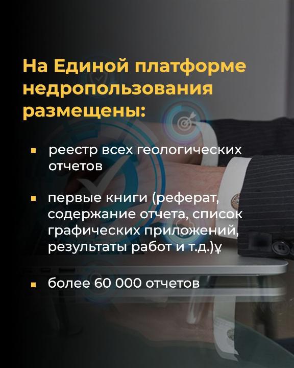 Жер қойнауын пайдаланудың бірыңғай платформасы барлық геологиялық ақпаратқа ашық қол жеткізуге мүмкіндік береді. Платформада 22 мемлекеттік қызмет цифрландырылды. Іске қосылғаннан бері 506 өтінім өңделді.
