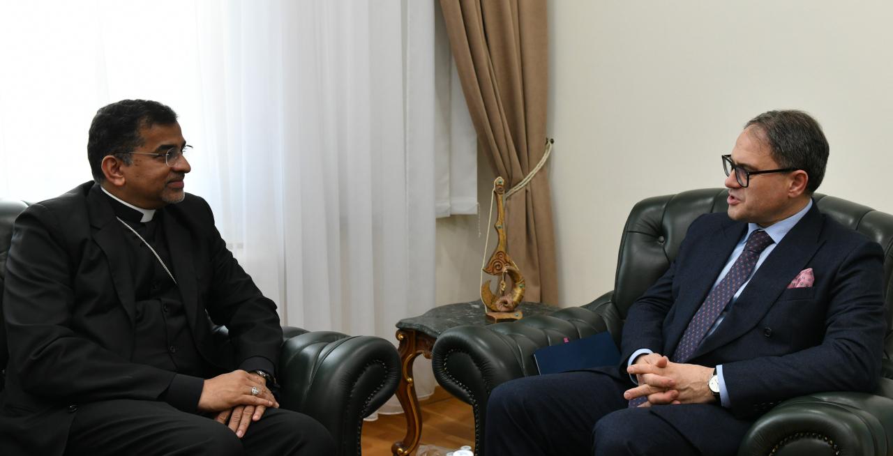 Астана, 2025 жылғы 28 ақпан – Қазақстан Республикасы Сыртқы істер министрінің орынбасары Роман Василенко Қазақстандағы Апостолдық нунций Джордж Панамтундилді қабылдады.