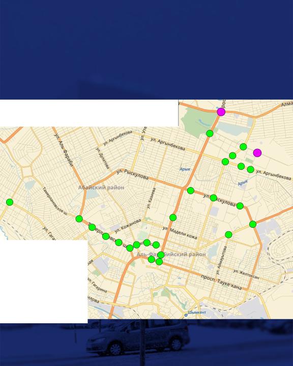 • Рысқұлов көшесінің Дулати, Адырбеков және Шаяхметов көшелері қиылысында