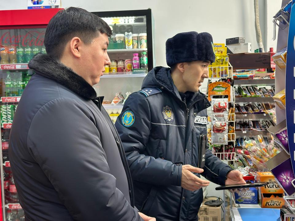 Рейд барысында ауданның тұрғын үй кешендерінде орналасқан сауда орындары тексеріліп, екі дүкенде насыбай мен снюс сату фактілері анықталды.