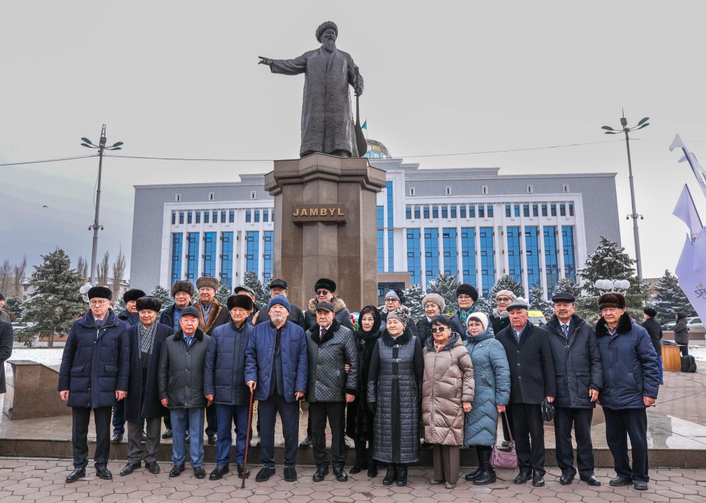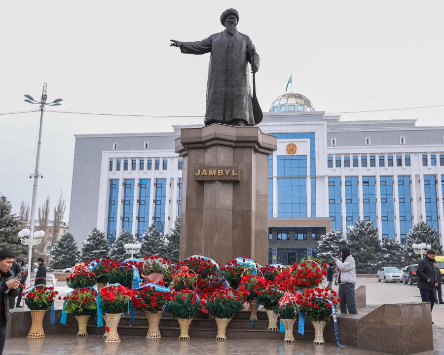 Бүгін ұлы ақын, өлең сөздің дүлділі Жамбыл Жабаевтың туғанына 179 жыл толып отыр. Осыған орай облыс әкімдігі ғимаратының алдындағы тау тұлғаның еңселі ескерткішіне гүл шоқтарын қою рәсімі өтті.