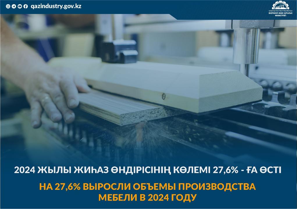 2024 жылы жиһаз өндірісінің көлемі 105,4 млрд теңгеге жетіп, өткен жылмен салыстырғанда 27,6 %-ға артты.