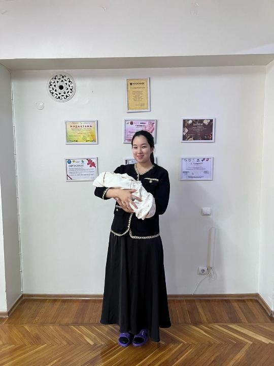 Барлық қиындықтарға қарамастан дәрігерлердің үйлесімді жұмысының арқасында физиологиялық босану штаттық режимде өтті. Салмағы 2885 г, бойы 51 см, Апгар шкаласы бойынша 6/8 балл болатын бала дүниеге келді. Өмірдің алғашқы сағаттарында нәресте неонатологтардың бақылауында болды.