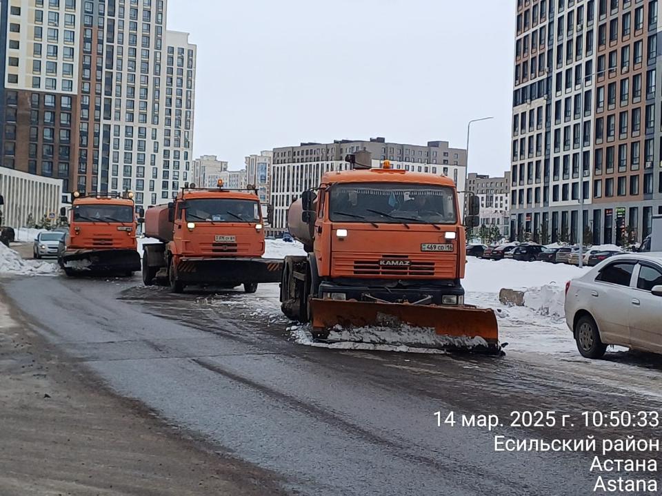 Наурыздың 14-іне қараған түні коммуналдық қызмет 3827 ауыр жүк көлігімен қаладан 54 807 текше метр қар шығарды.