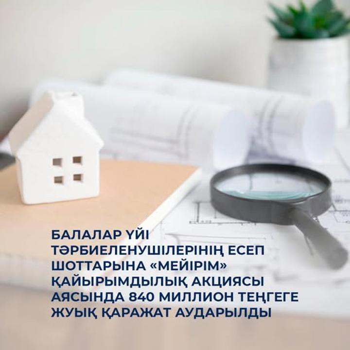 2024 жылдың сәуір айынан бастап акция аясында 1317 өзара ынтымақтастық туралы келісім жасалып, 2000-нан астам балалар үйі тәрбиеленушісінің тұрғын үй депозиттік шоттарына 840 миллион теңгеге жуық қаражат аударылды.
