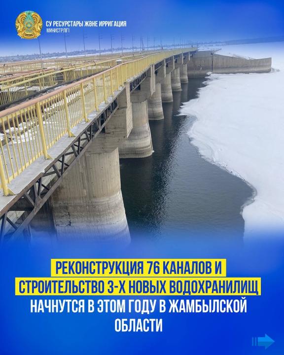 «Министрлік алдағы екі жылда Жамбыл облысында 19 жобаны аяқтауды жоспарлап отыр. Атап айтқанда, жалпы ұзындығы 330 шақырым болатын 105 каналға реконструкция жасалады. Бұл тасымалдау кезінде су шығынын азайтады және өңірдегі егіс алқаптарын суармалы сумен қамтамасыз ету сапасын жақсартады», – деді Су ресурстары және ирригация вице-министрі Ерболат Ибрайханов.
