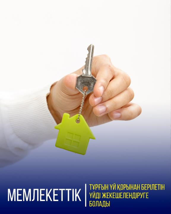 Бұдан бөлек, әлеуметтік осал топтар мен бюджеттік ұйымдардың 10 жылдан астам жұмыс істеген қызметкерлері де өз пәтерін сатып ала алады. Пәтерді жекешелендіру үшін Kezekte.kz электрондық жүйесіне өтінім беру қажет. Тұрғын үй қорынан тек бір ғана тұрғын үйді жекешелендіруге құқылы (купондық тетік арқылы жекешелендіруді қоспағанда).