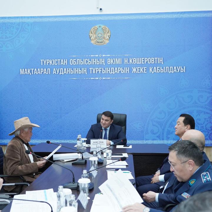 Түркістан облысының әкімі Нұралхан Көшеровтің облыс тұрғындарымен кездесулері мен жеке қабылдаулары жалғасуда. Бұл жолы өңір басшысы Мақтаарал ауданына барып, тұрғындардың өтініштері мен ұсыныстарын тыңдады. Жеке қабылдауын өткізді. Аймақты дамыту барысы туралы баяндады. Облыс әкімі Мақтааралдың әлеуетін көтеру жұмыстары жанданатынын жеткізді. Ауданның мүмкіндігі мол екеніне тоқталды.