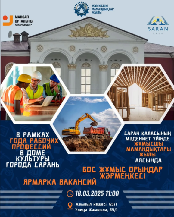Бос орындар жәрмеңкесі 18 наурызда сағат 11:00 Саран қаласының Мәдениет үйінде өтеді.