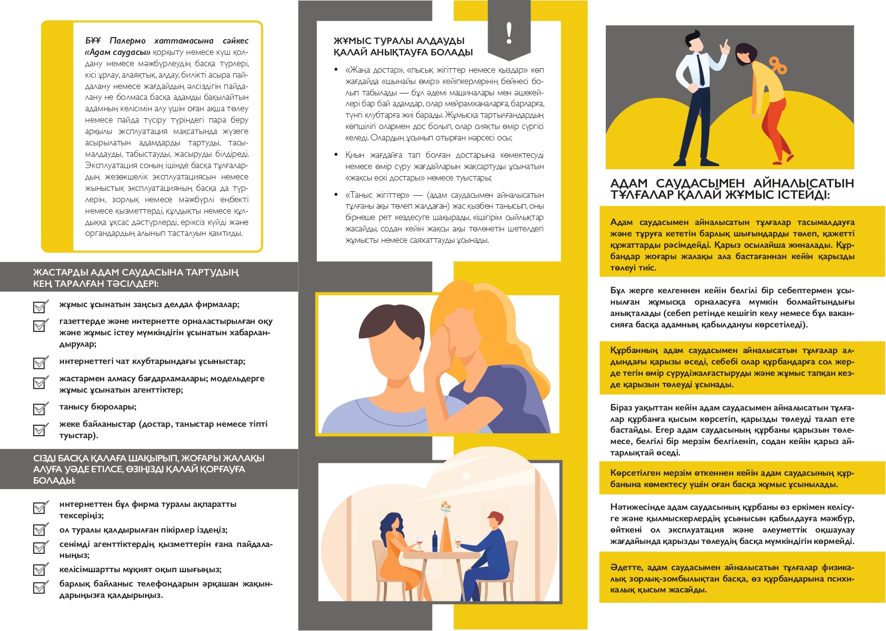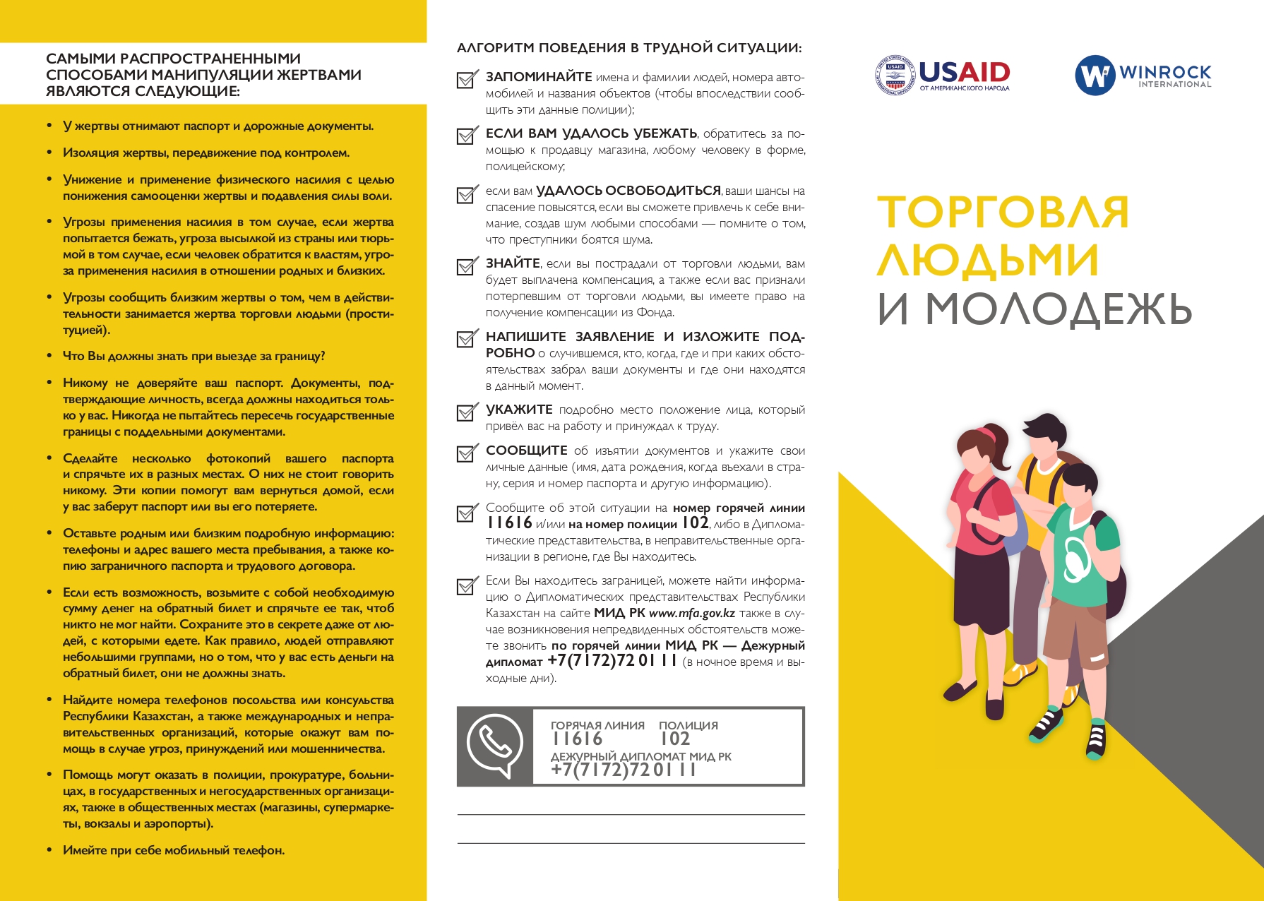 Адам құқықтары жөніндегі ұлттық орталықтың Ақтөбе облысы бойынша өкілдігі туристер, еңбек мигранттары,Қазақстан Республикасына келетін/кететін басқа да адамдар үшін адам саудасына байланысты жағдайдың алдын алу мақсатында Қазақстан Республикасының Бас прокуратура жанындағы Құқық қорғау органдары академиясы, Winrock International және Ақмола облысының прокуратурасы дайындаған ақпараттық бюллетеньдерін назарға ұсынады.