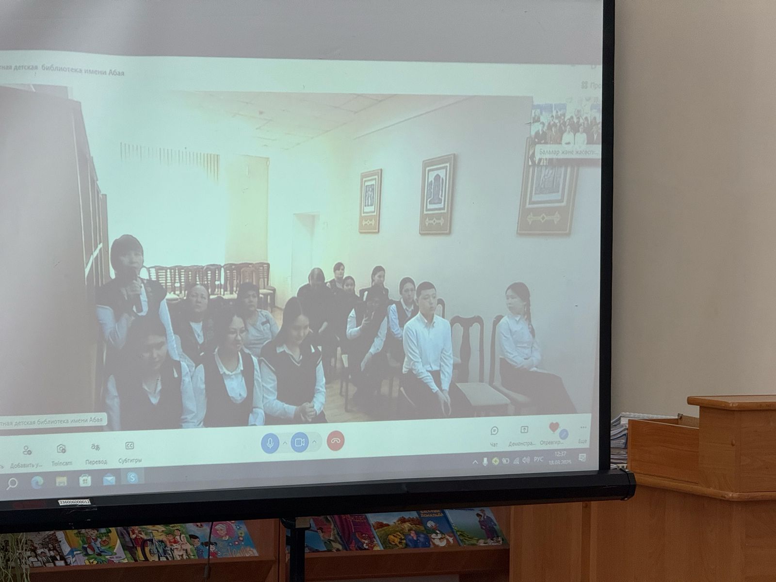 «Семей қаласының орталықтандырылған кітапхана жүйесі» КММ-нің Балалар және жасөспірімдер кітапханасында А.Құнанбаевтың туғанына 180 жыл толуына орай Абай атындағы Қарағанды облыстық балалар кітапханасымен бірлесе ұйымдастырылған «Әлемдік ойдың алыбы» атты онлайн кездесу кеші өткізілді.