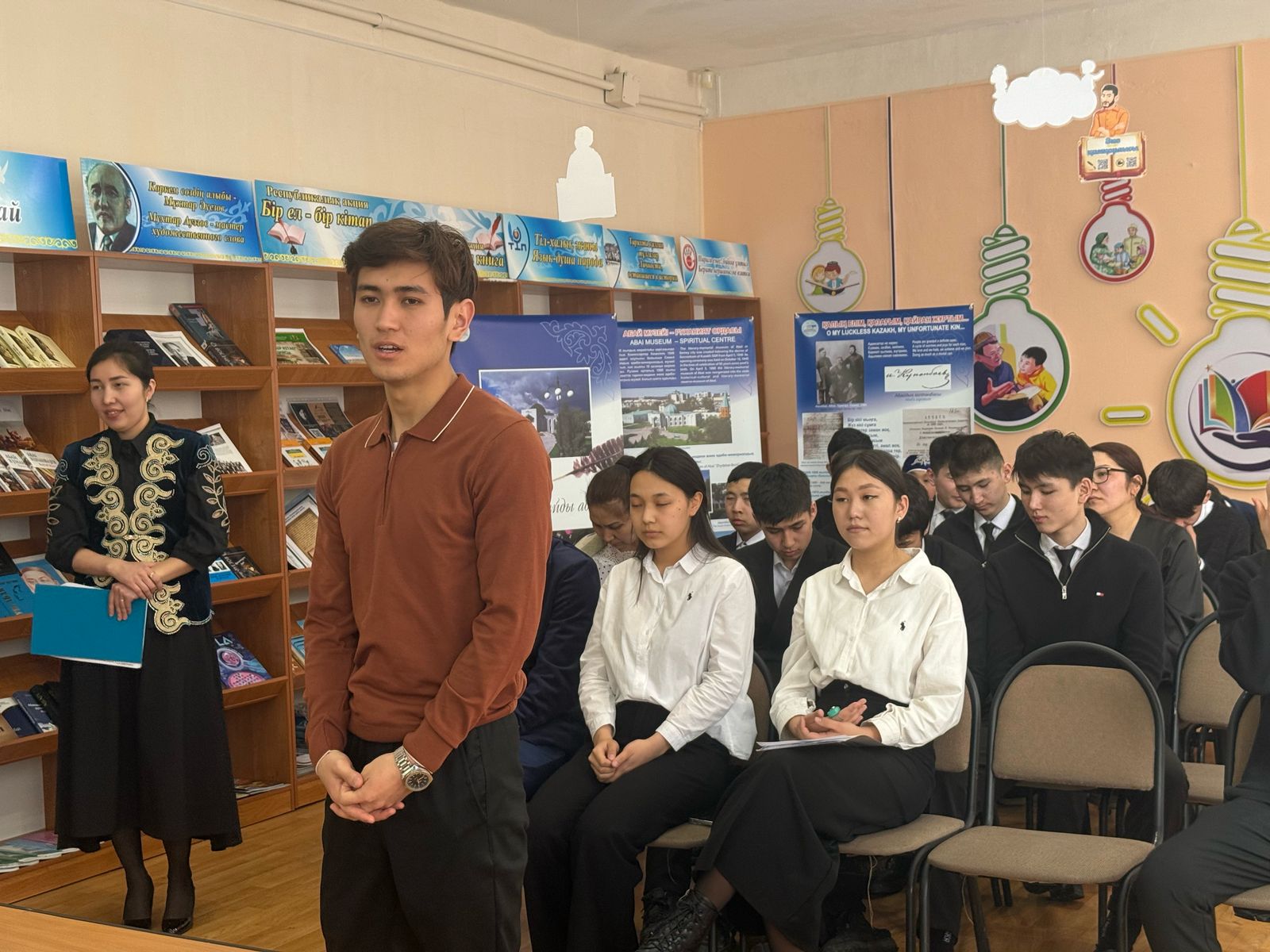 Шараны аша отырып кітапхана қызметкері Абай – бүкіл әлем таныған дана ұстаз, ақын және адамзат кемеңгері екенін, Абайдың ұлылығы мен бірегейлігі ұлттық рухтың бекемдігін биікке көтеріп, өз халқының санасына жігерлілік пен мақсаткерлік қасиеттерін сіңіргенін атап өтті. Абай Құнанбайұлының 180 жылдық мерейтойын мерекелеу – бұл тәуелсіз Қазақстанның жаңа тарихындағы ең маңызды оқиғалардың бірі екендігі, ол халықтың тарихи санасын тереңдетуге және елдің рухани мәдениетін жаһандық форматта жан-жақты ілгерілетуге бағытталғаны айтылды.