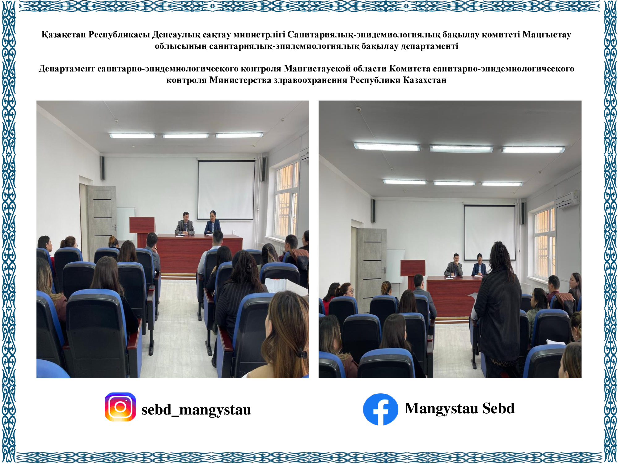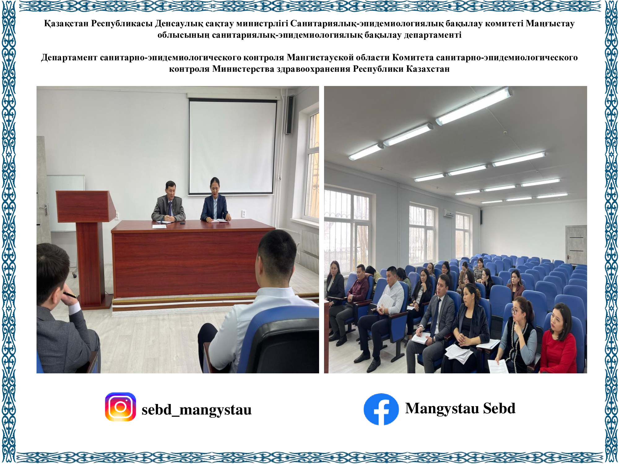 Маңғыстау облысының санитариялық-эпидемиологиялық бақылау департаментінің басшысы Мұхтар Ұбайтжанұлы Сербаевтың, Департамент басшысының орынбасары, Әдеп жөніндегі уәкілі Қарлығаш Болатбайқызы Матаеваның қатысуымен 2025 жылдың 18 наурызында Ақтау қалалық санитариялық-эпидемиологиялық бақылау басқармасының ұжымымен кеңес өткізілді.