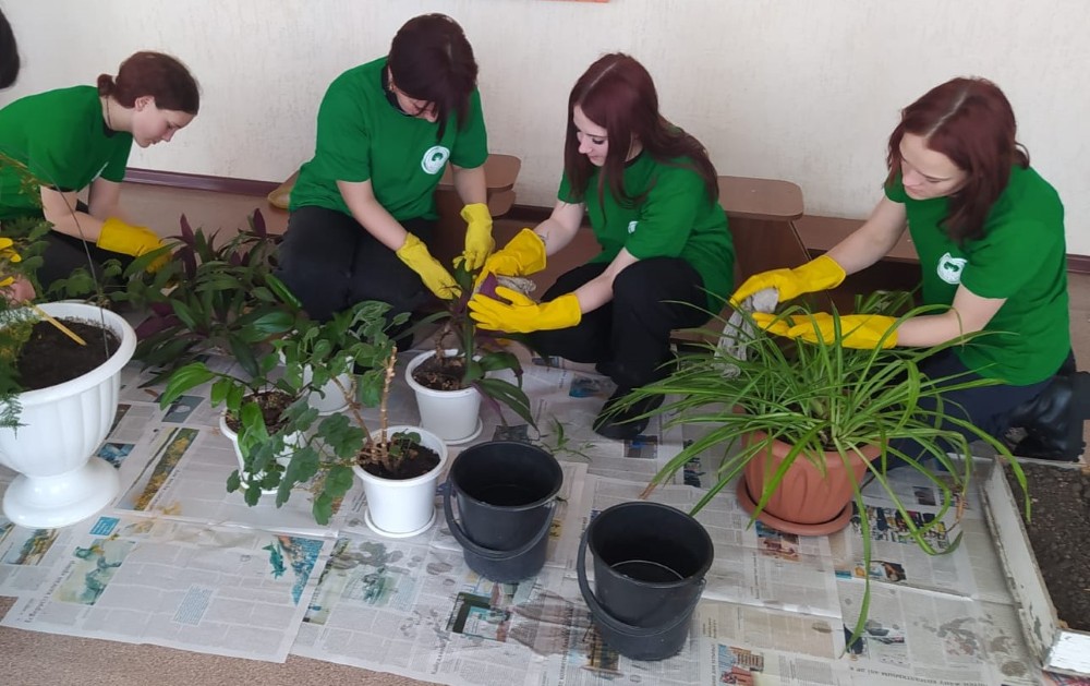 Өсімдіктер уақтылы жаңартуды қажет етеді, көктемнің келуімен бұл әсіресе сезіледі, сондықтан жыл сайын біздің оқу орнымыздың студенттері жасыл желектерді трансплантациялаумен айналысады.