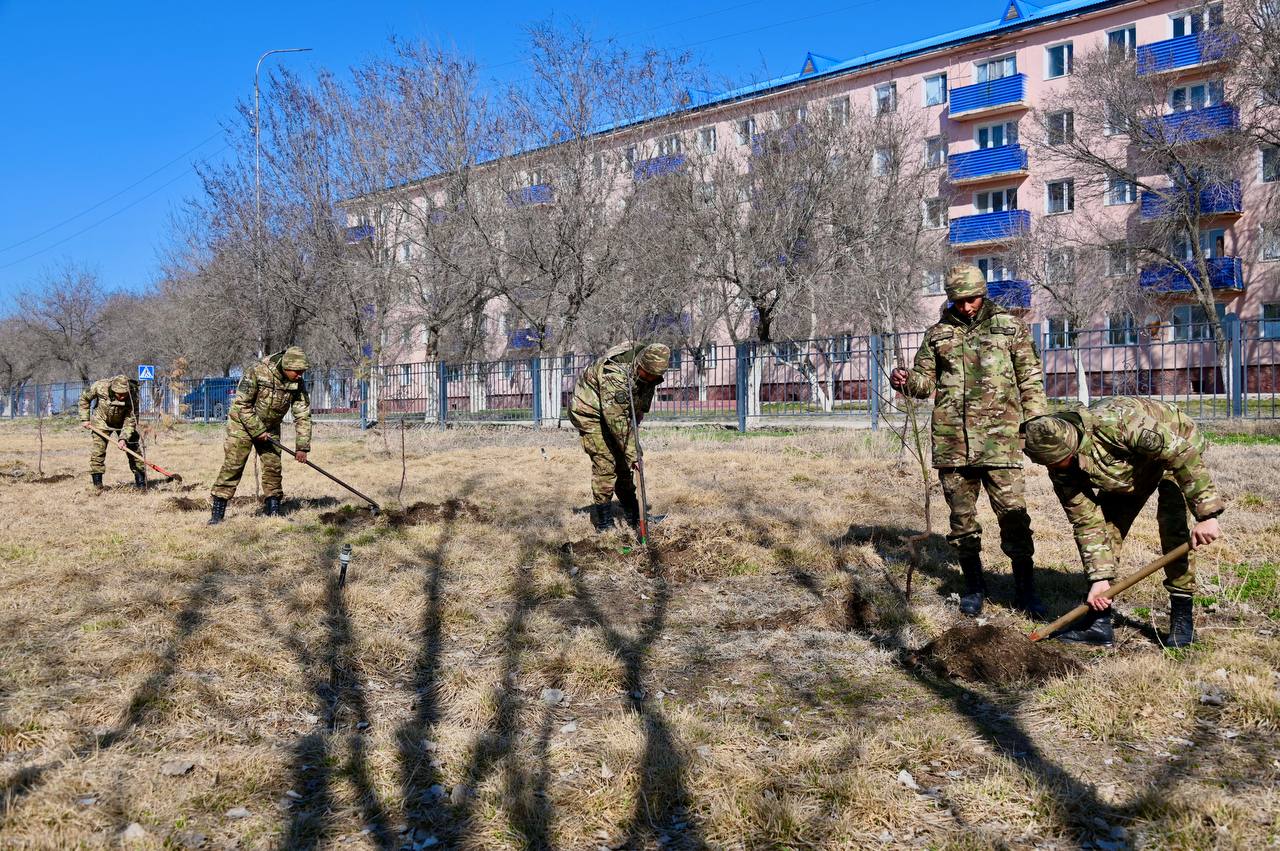 «Наурызнама» онкүндігі аясындағы Жаңару күні Гвардейск гарнизоны әскери бөлімдерінің жеке құрамы ағаш егіп, қалашық аумағын абаттандыру акциясын өткізді.