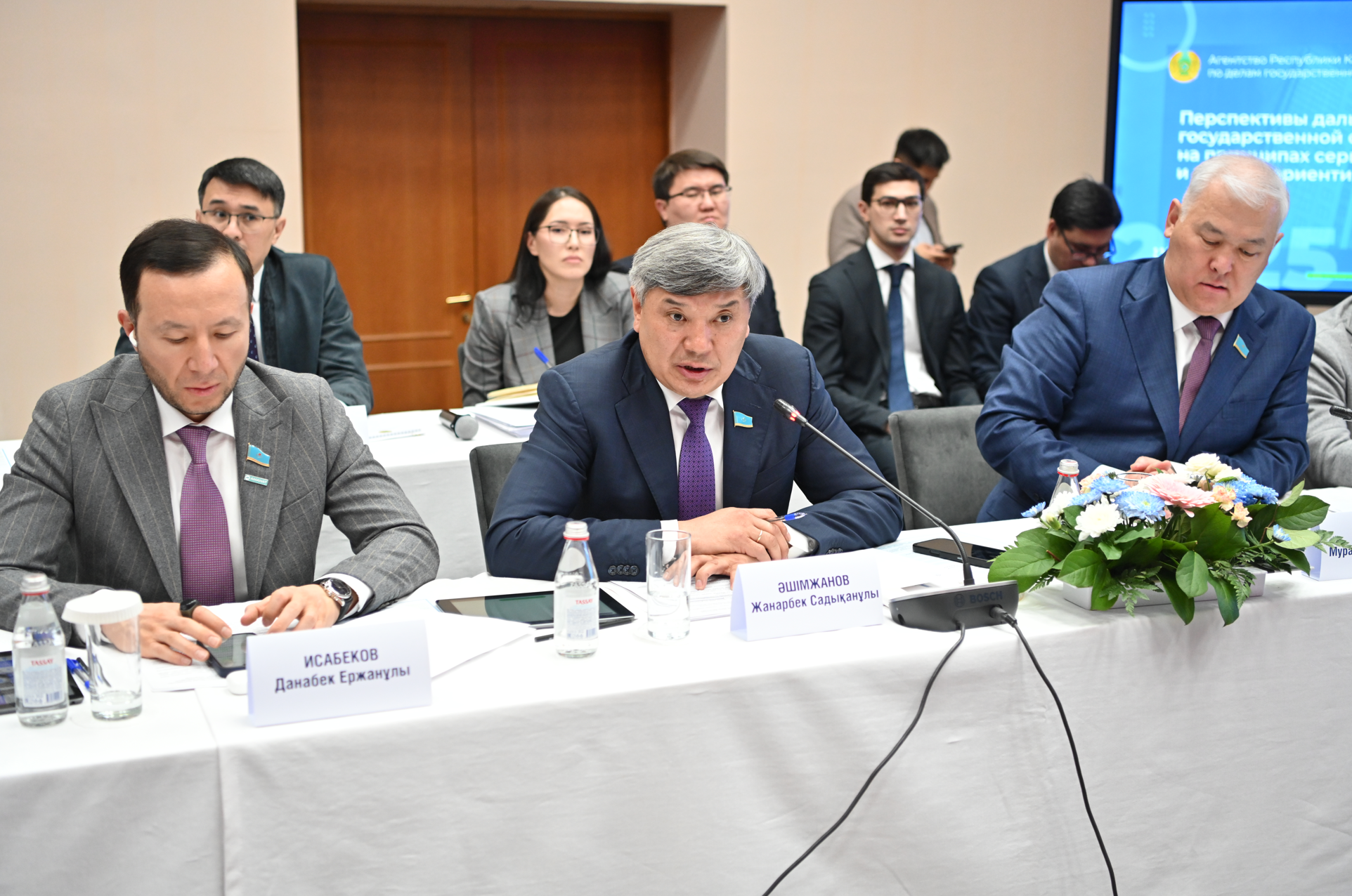 Бүгін Мемлекеттік қызмет істері агенттігінде Парламент Мәжілісінің Заңнама және сот-құқықтық реформа комитетінің «Сервистік және клиентке бағдарланған қағидаттар негізінде мемлекеттік қызметті дамытудың болашақтағы мүмкіндіктері» тақырыбындағы көшпелі отырысы өтті.